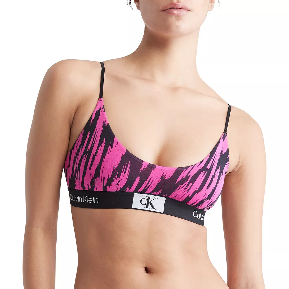 Inspired by the 1996 archival underwear campaign, Calvin Klein 96 is a vibrant logo story featuring an iconic monogram framed in a box. This unlined bralette is designed with a recycled cotton stretch blend and repeating classic logos, making it the perfect foundation piece.