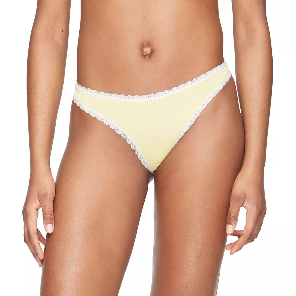 Updated with fresh detailing and a playful spirit, this versatile thong panty from Calvin Klein is crafted from ultra sleek microfiber with a silky feel.